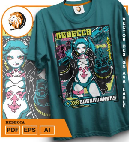 Plantilla diseño de camisetas vectoriales de anime Cyber Rebecca 2