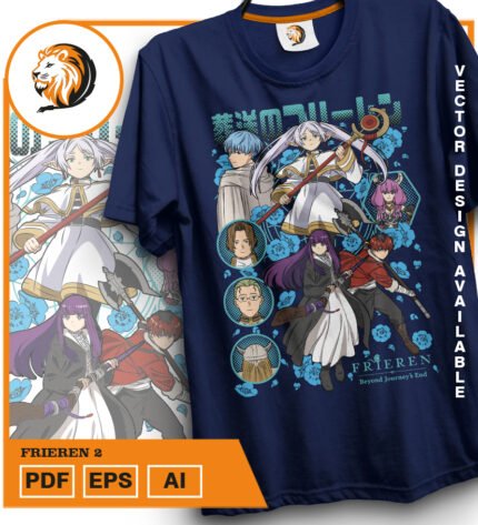 Plantilla diseño de camisetas vectoriales de anime Frieren 2