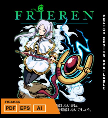 Plantilla diseño de camisetas vectoriales de anime Frieren