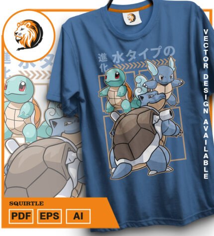 Plantilla diseño de camisetas vectoriales de anime poke squrtle