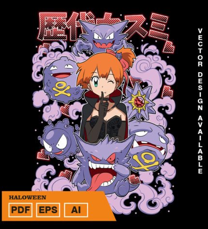 Plantilla diseño de camisetas vectoriales de anime poke misty