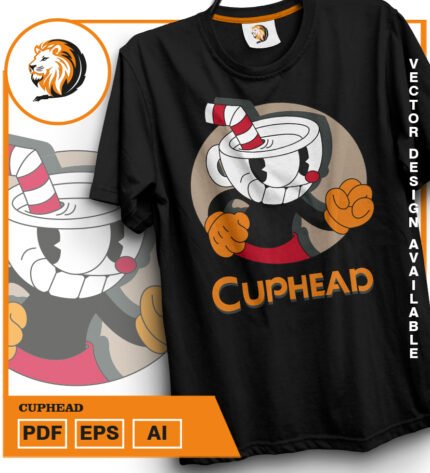 Plantilla diseño de camisetas vectoriales cuphead