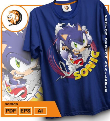 Plantilla diseño de camisetas vectoriales sonico