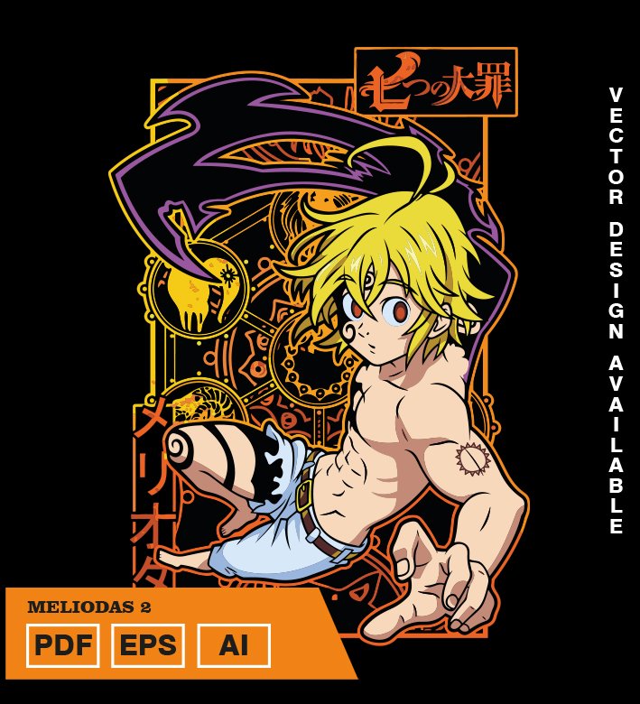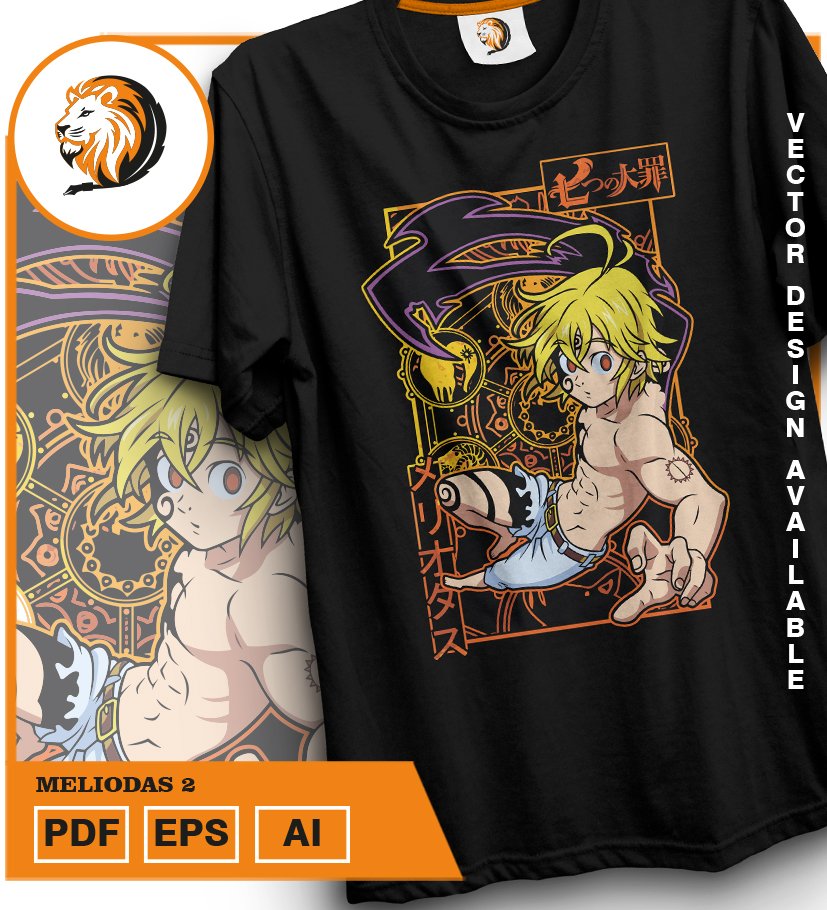 Plantilla diseño de camisetas vectoriales de anime 7 Pecados Meliodas 2