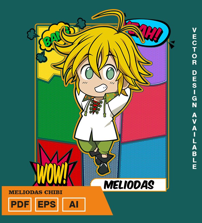 Plantilla diseño de camisetas vectoriales de anime 7 Pecados Meliodas chibi