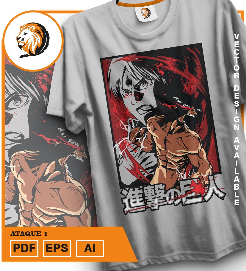 Plantilla diseño de camisetas vectoriales de anime Ataque 1