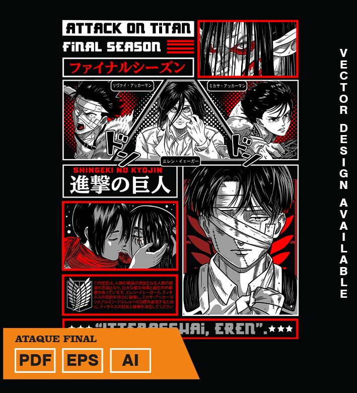 Plantilla diseño de camisetas vectoriales de anime Ataque 3