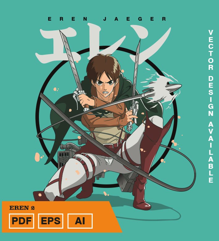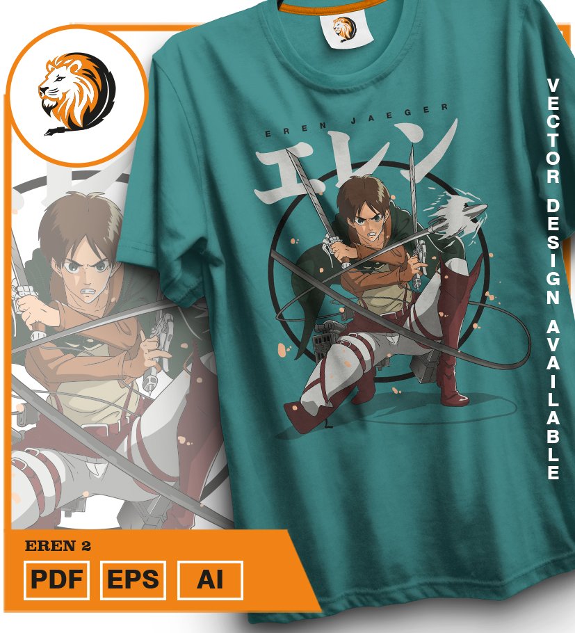 Plantilla diseño de camisetas vectoriales de anime Ataque Eren 2