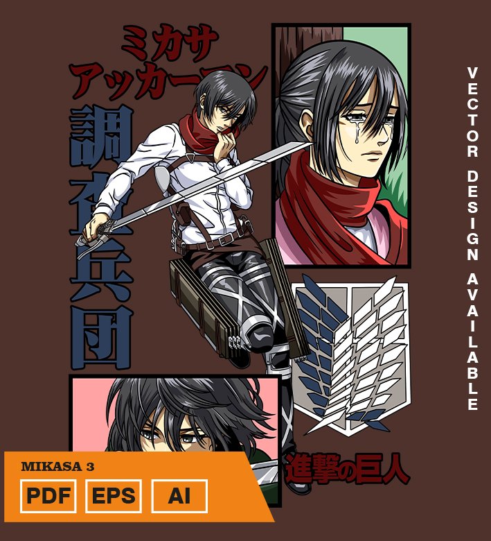 Plantilla diseño de camisetas vectoriales de anime Ataque Mikaza 3