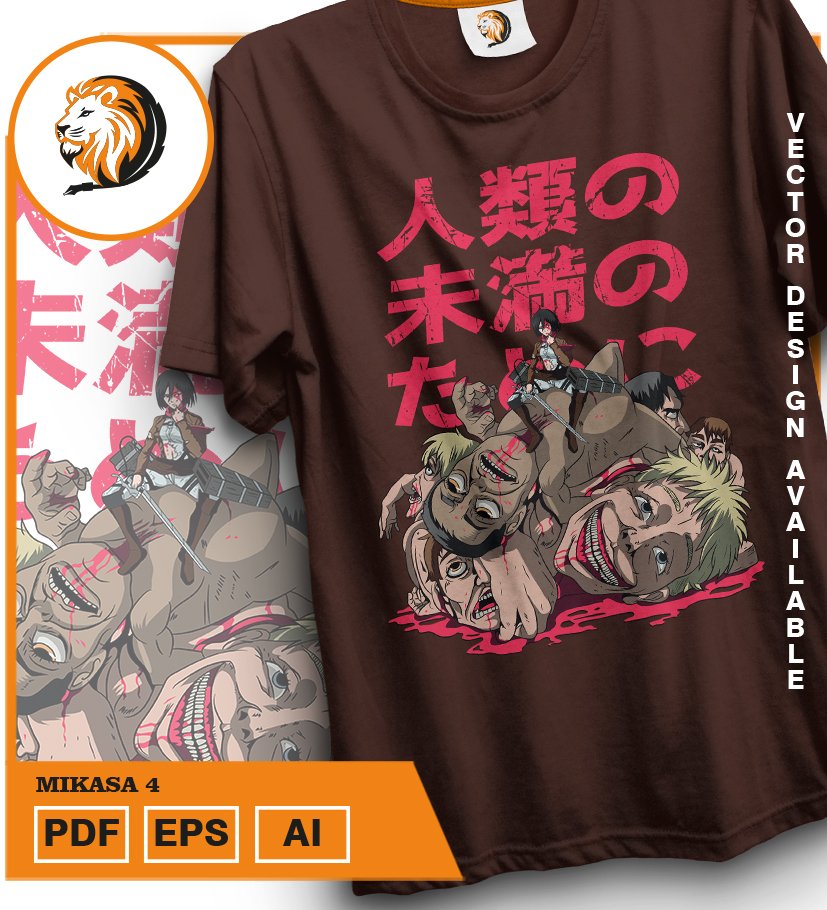 Plantilla diseño de camisetas vectoriales de anime Ataque Mikaza 4