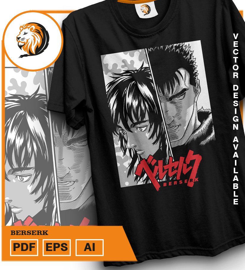 Plantilla diseño de camisetas vectoriales de anime Berserk