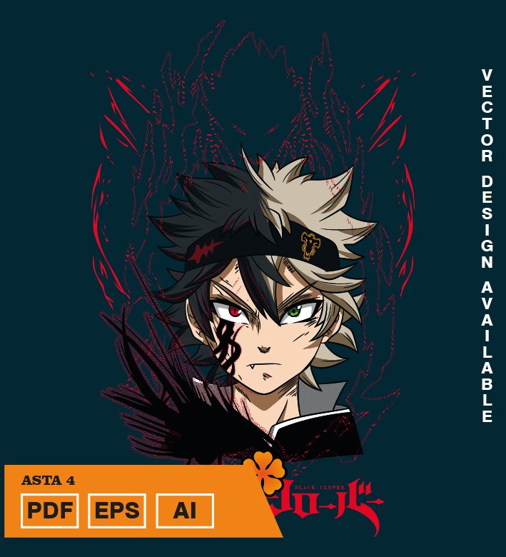 Plantilla diseño de camisetas vectoriales de anime Black Asta 4
