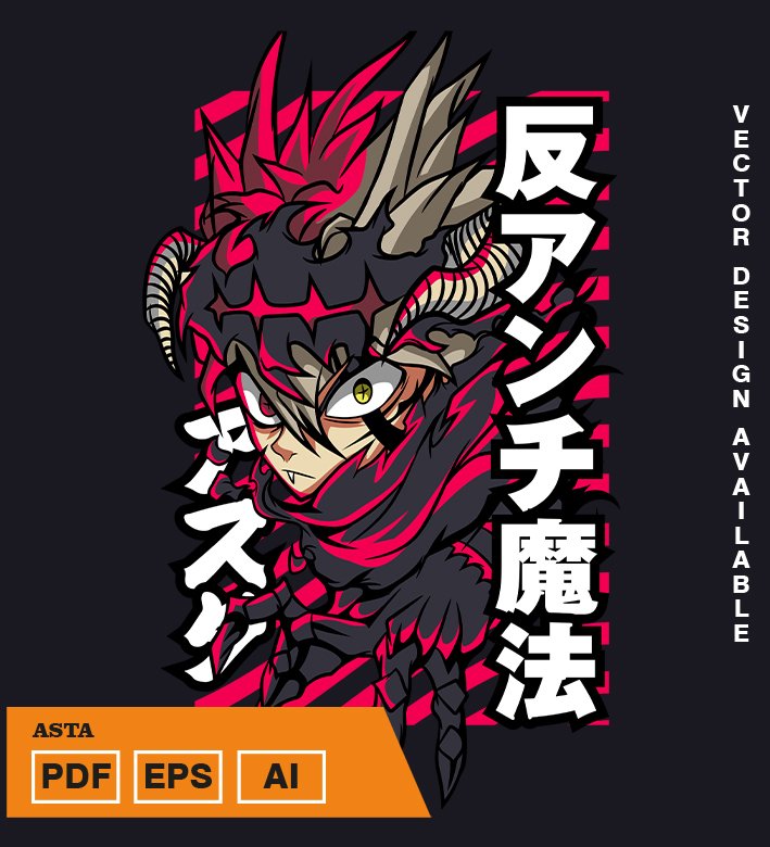 Plantilla diseño de camisetas vectoriales de anime Black Asta
