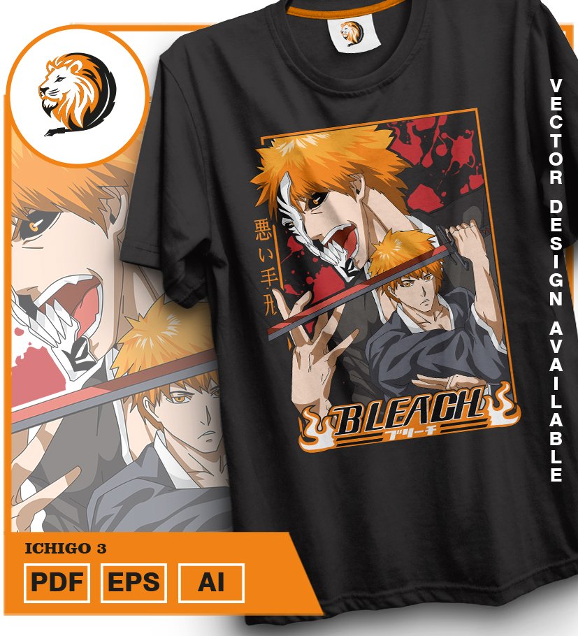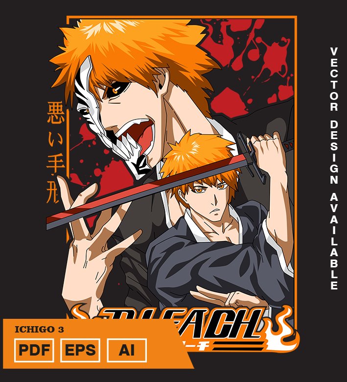 Plantilla diseño de camisetas vectoriales de anime Bleach Ichigo 4