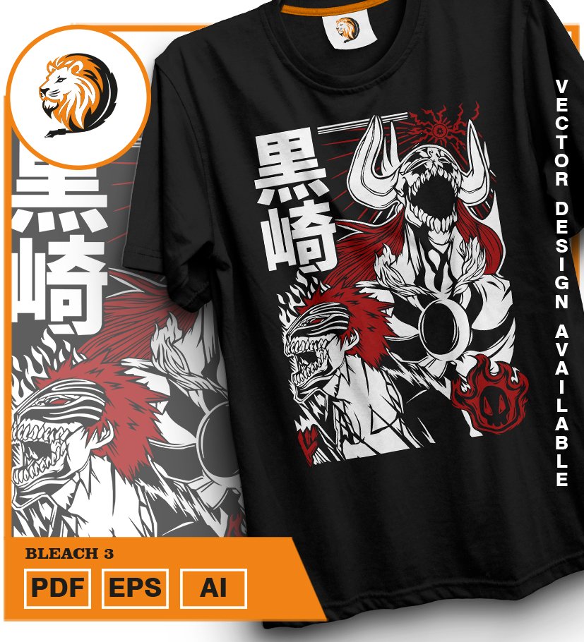 Plantilla diseño de camisetas vectoriales de anime Bleach Ichigo