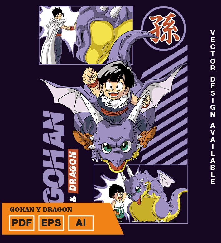 Plantilla diseño de camisetas vectoriales de anime Bola Dragon gohan