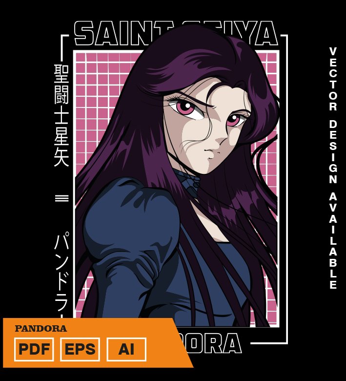 Plantilla diseño de camisetas vectoriales de anime Caballeros Pandora