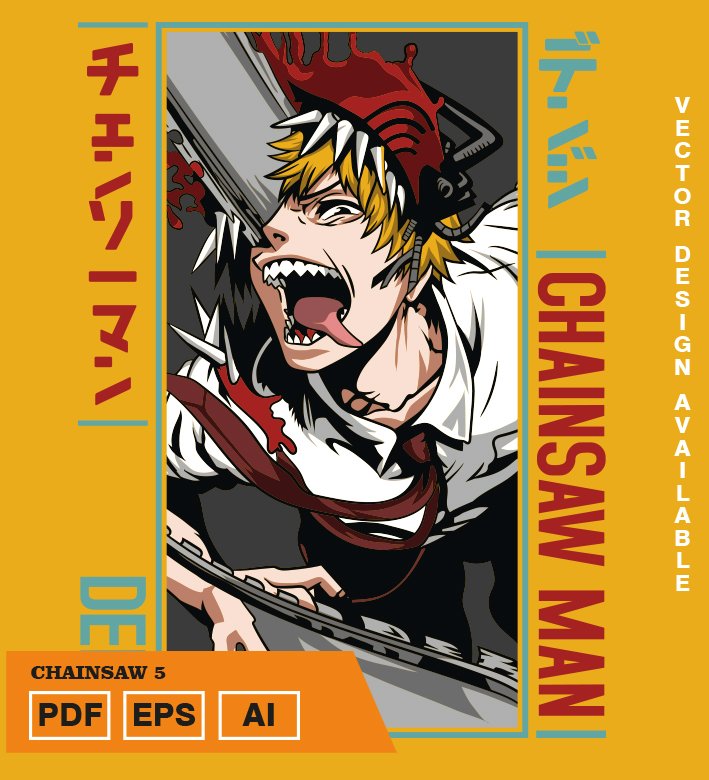 Plantilla diseño de camisetas vectoriales de anime Chainsaw 6