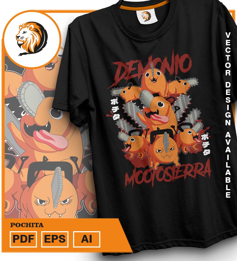 Plantilla diseño de camisetas vectoriales de anime Chainsaw Pochita