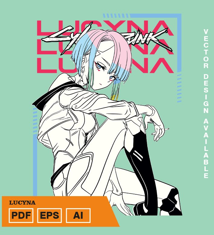 Plantilla diseño de camisetas vectoriales de anime Cyber lucyna