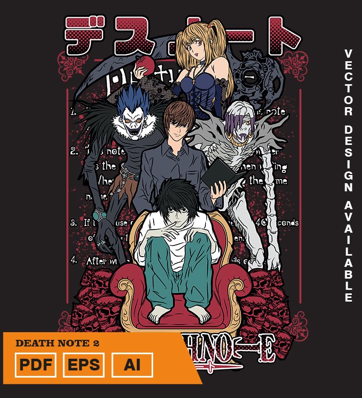 Plantilla diseño de camisetas vectoriales de anime Death 3