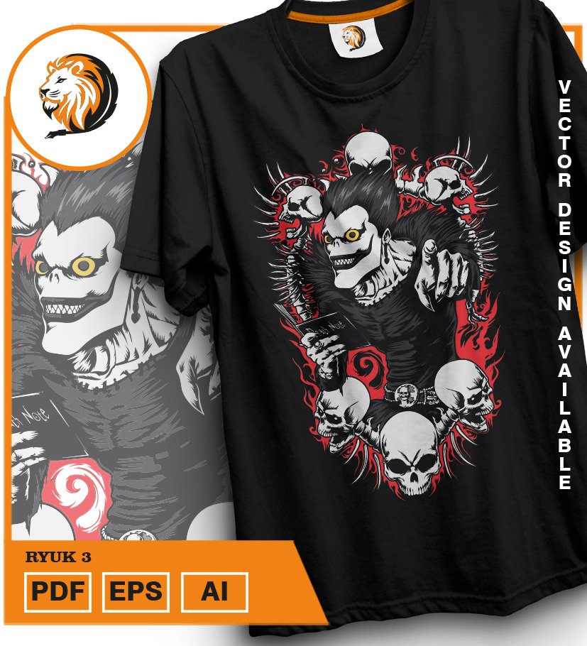 Plantilla diseño de camisetas vectoriales de anime Death ryuk 2