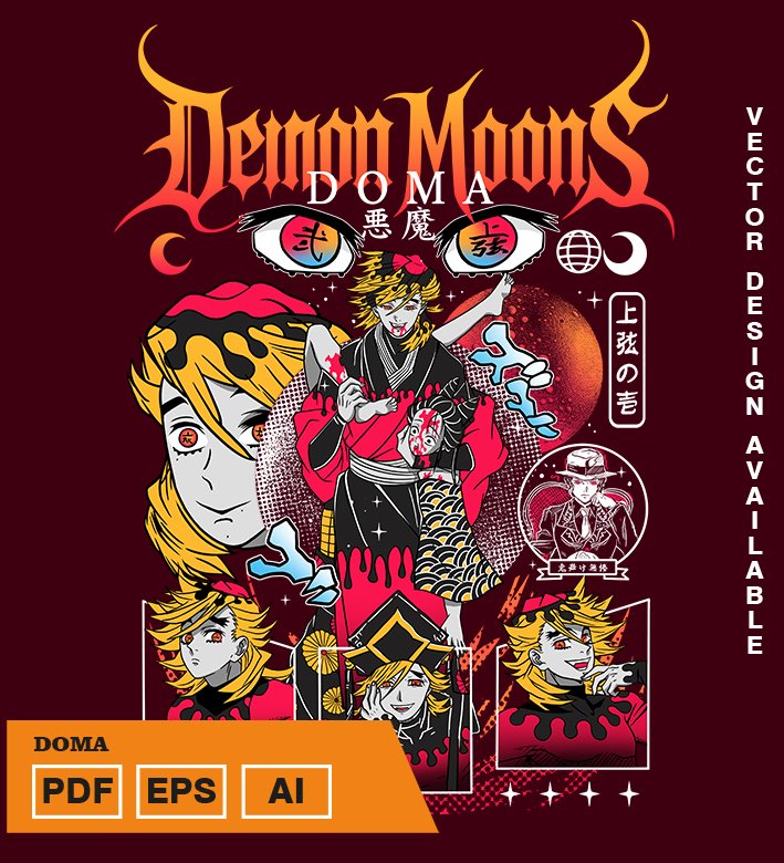 Plantilla diseño de camisetas vectoriales de anime Demon Doma