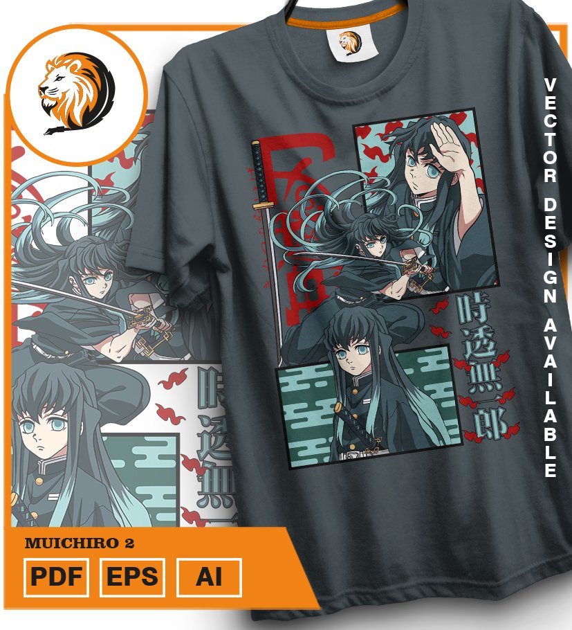 Plantilla diseño de camisetas vectoriales de anime Demon Muichiro 2