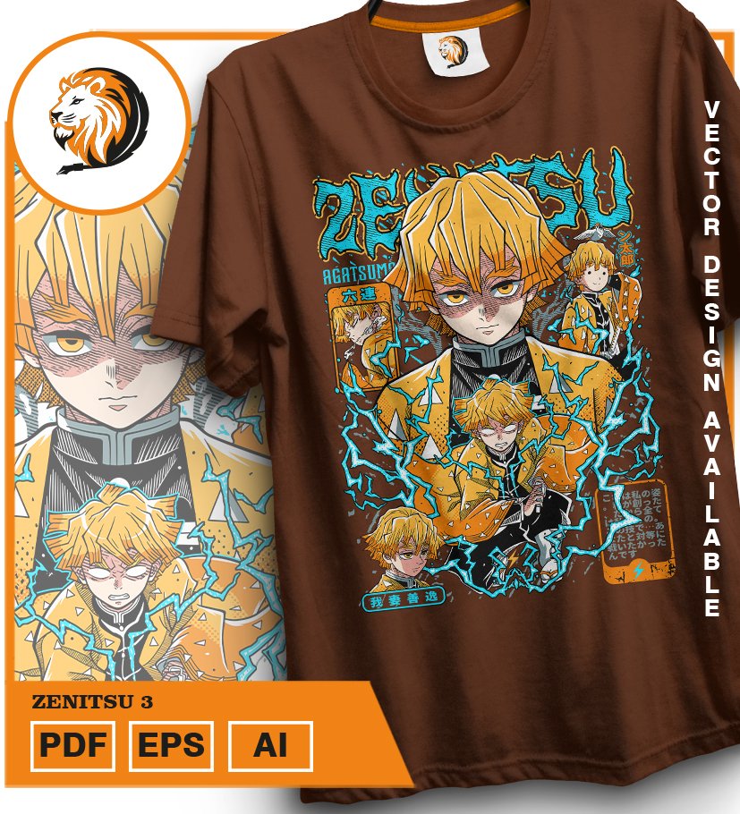 Plantilla diseño de camisetas vectoriales de anime Demon Zenitzu 3