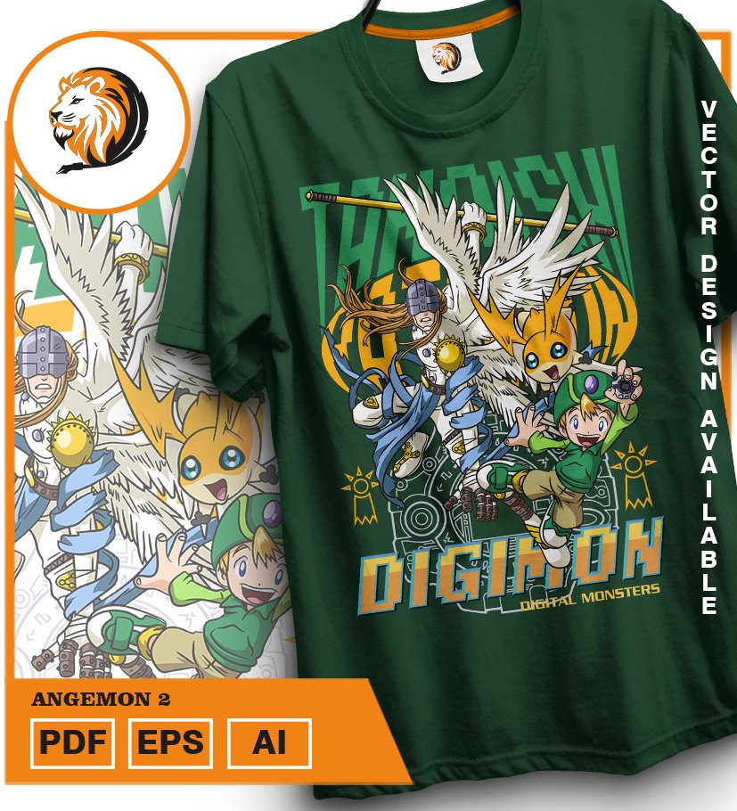 Plantilla diseño de camisetas vectoriales de anime Digi angemon 2