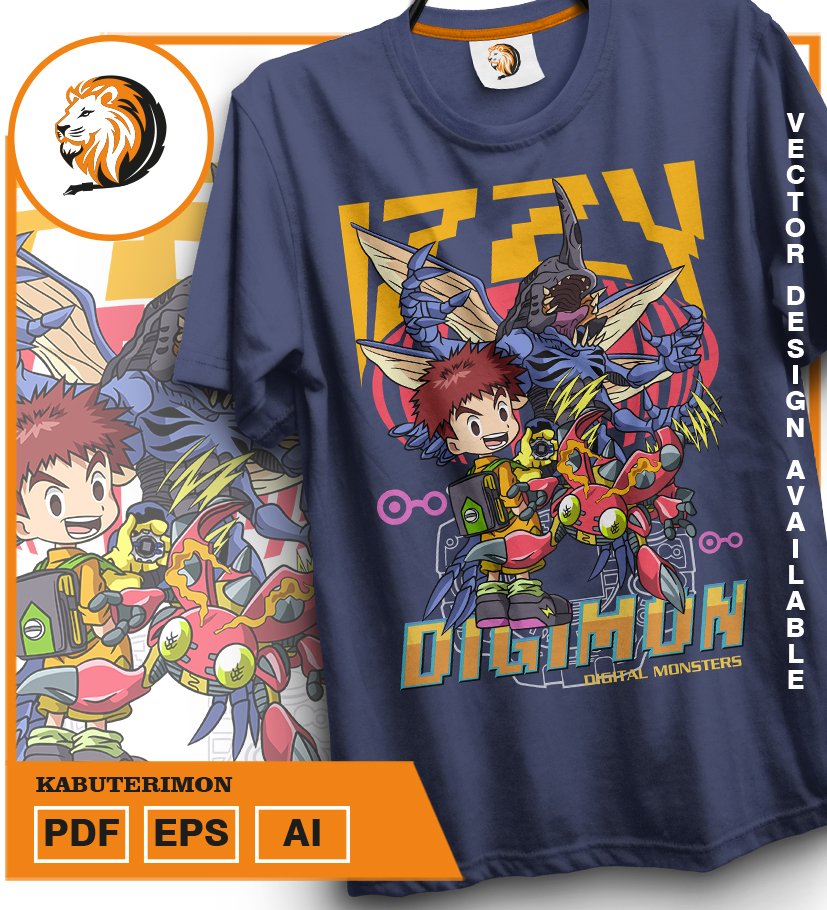 Plantilla diseño de camisetas vectoriales de anime Digi kabuterimon
