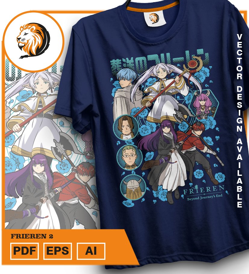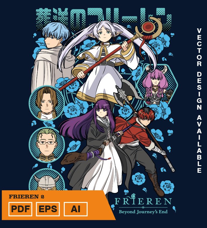 Plantilla diseño de camisetas vectoriales de anime Frieren 2