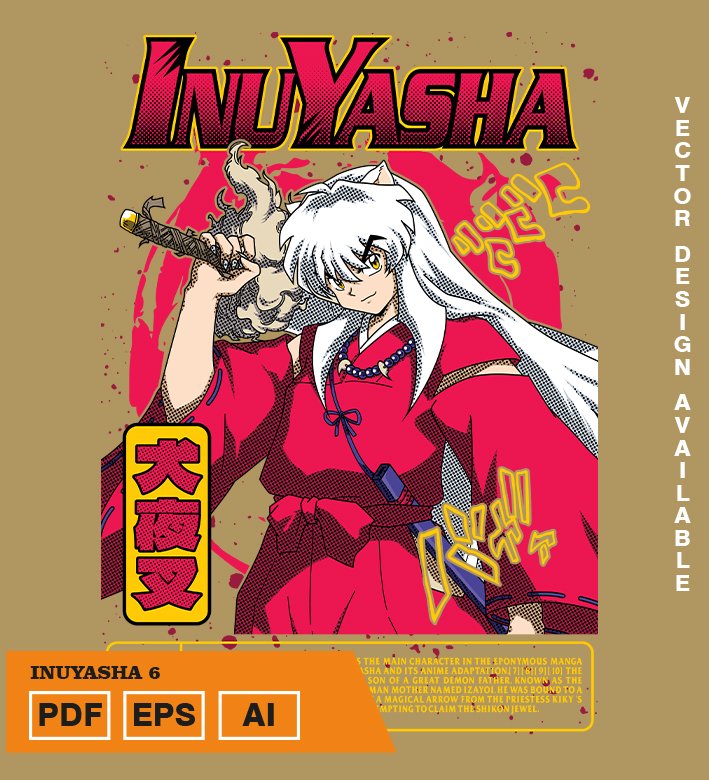 Plantilla diseño de camisetas vectoriales de anime Inuyasha 6