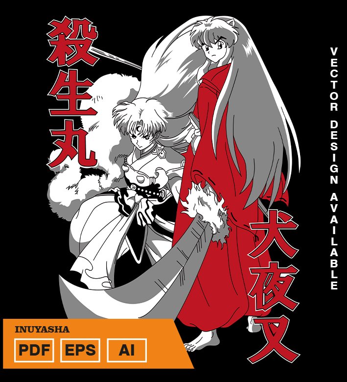 Plantilla diseño de camisetas vectoriales de anime Inuyasha