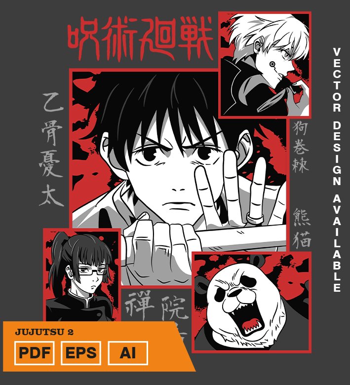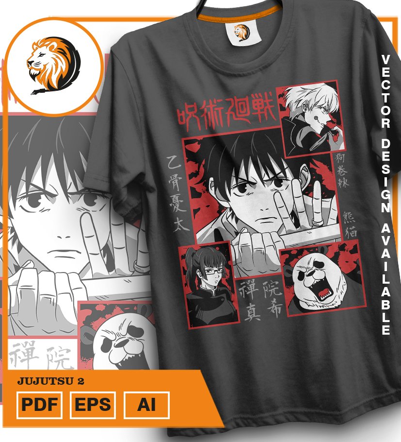 Plantilla diseño de camisetas vectoriales de anime Jujutsu 2