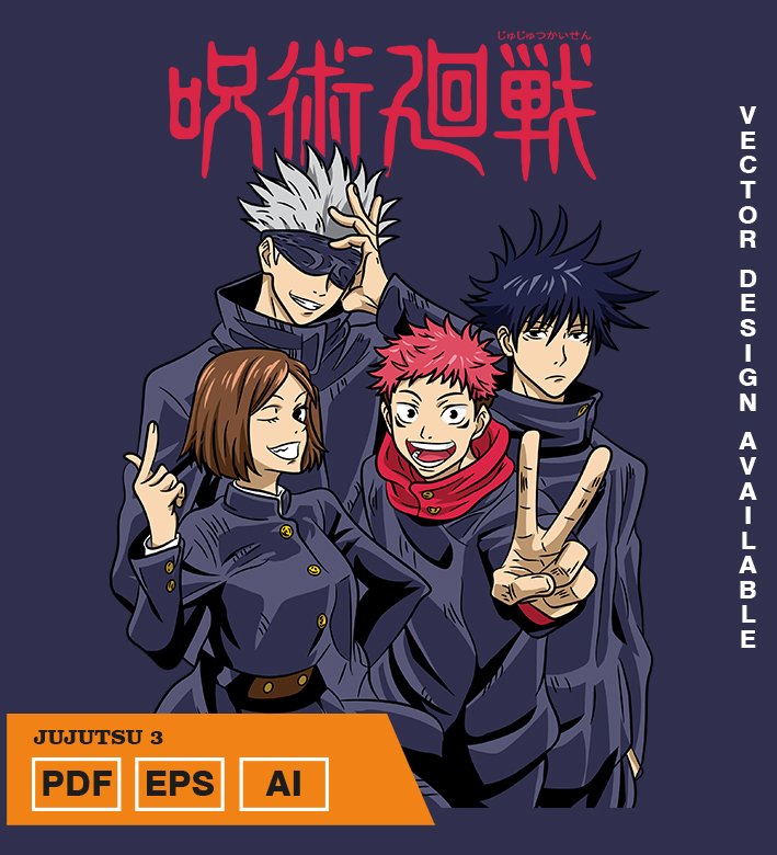 Plantilla diseño de camisetas vectoriales de anime Jujutsu 3