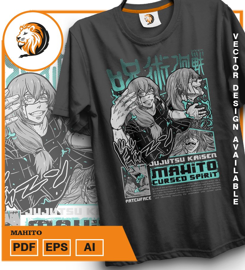 Plantilla diseño de camisetas vectoriales de anime Jujutsu Mahito