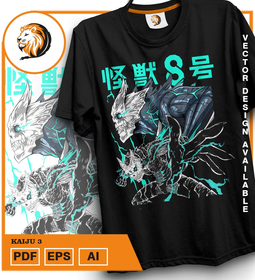 Plantilla diseño de camisetas vectoriales de anime Kaiju 3