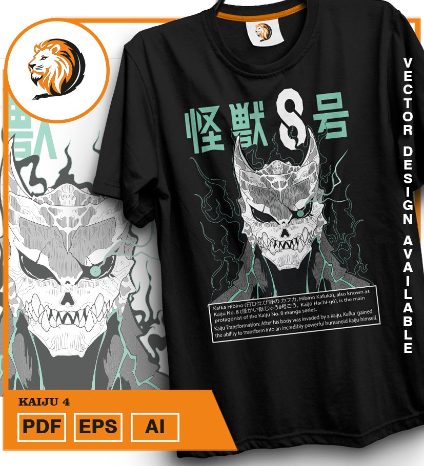 Plantilla diseño de camisetas vectoriales de anime Kaiju 4