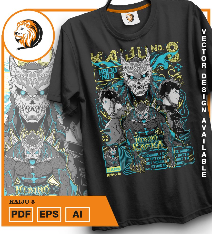 Plantilla diseño de camisetas vectoriales de anime Kaiju 5