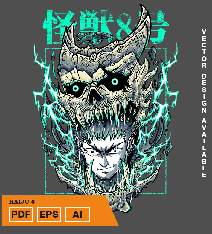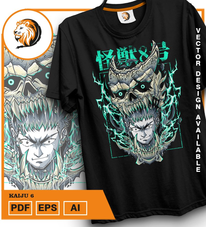 Plantilla diseño de camisetas vectoriales de anime Kaiju 6