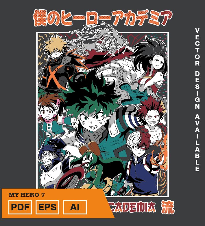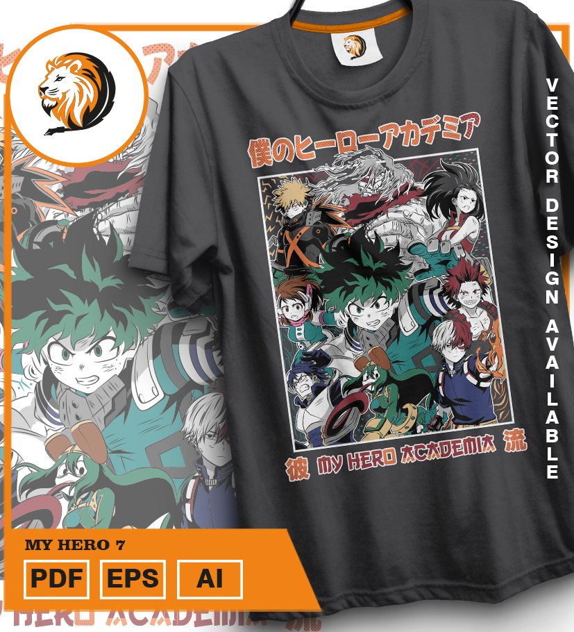 Plantilla diseño de camisetas vectoriales de anime My Heroe 6