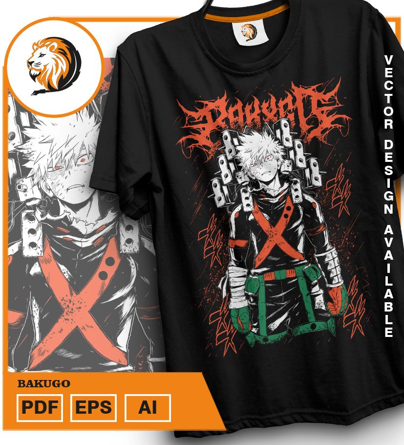 Plantilla diseño de camisetas vectoriales de anime My Heroe Bakugo