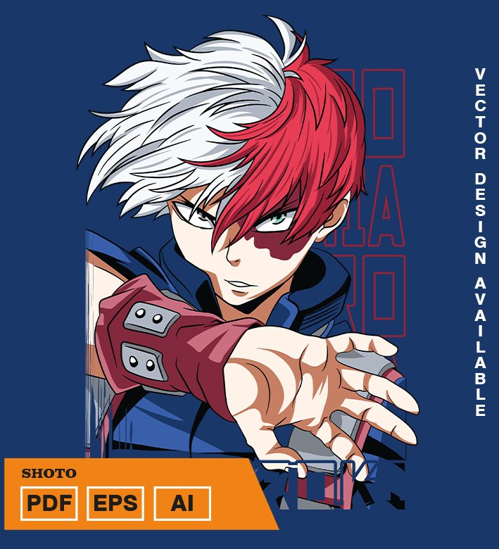 Plantilla diseño de camisetas vectoriales de anime My Heroe Todoroki