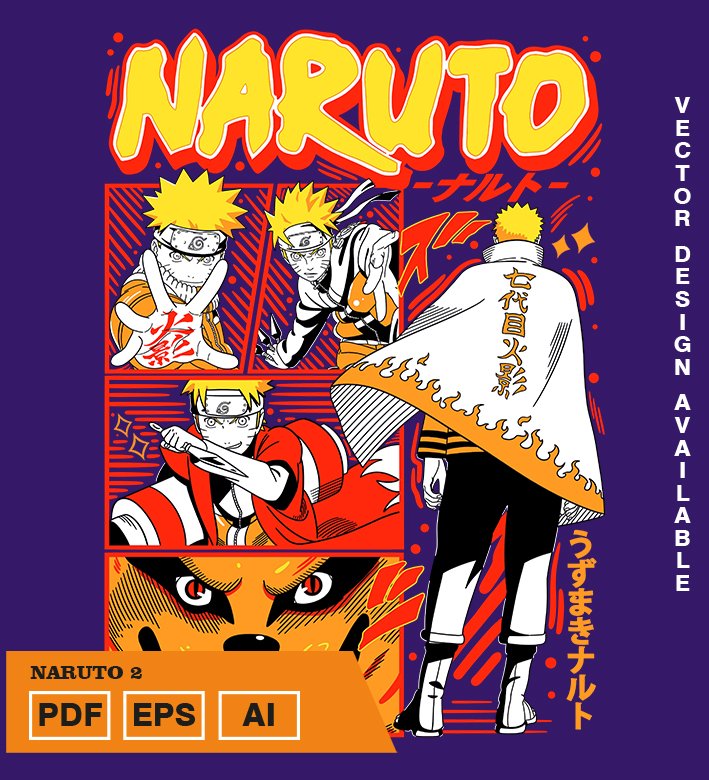 Plantilla diseño de camisetas vectoriales de anime Naruto 3