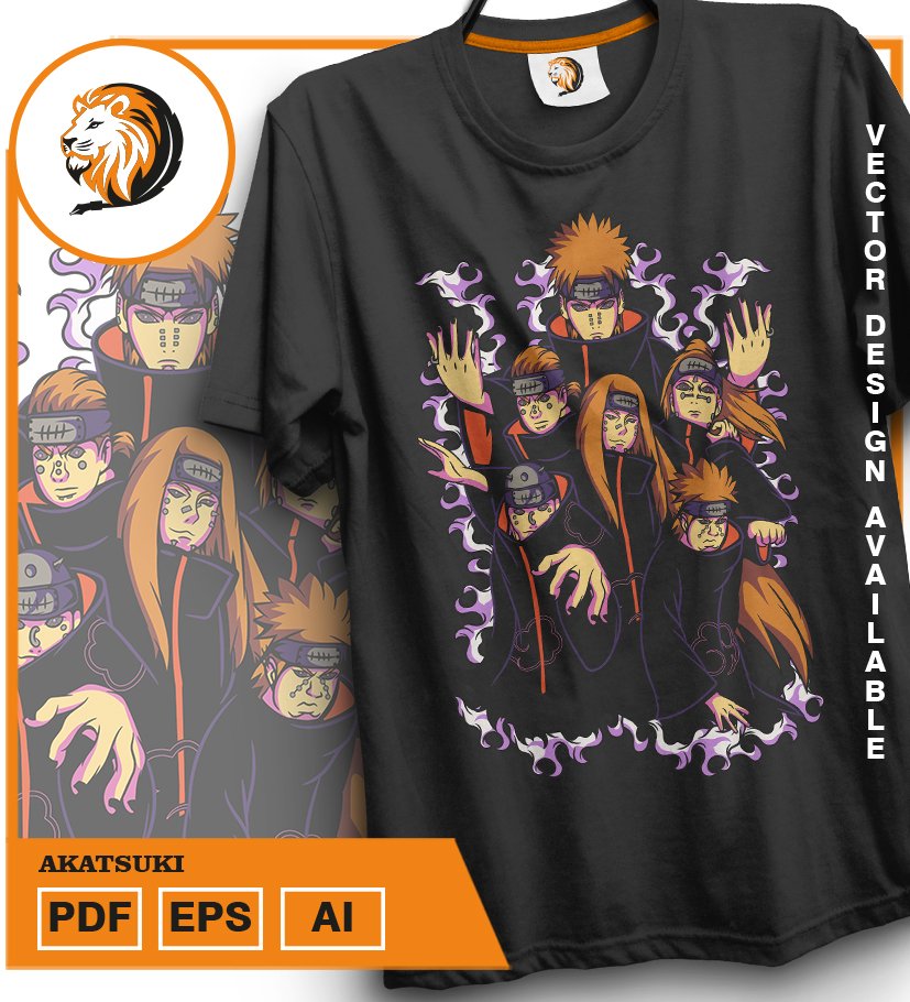 Plantilla diseño de camisetas vectoriales de anime Naruto akatsuki