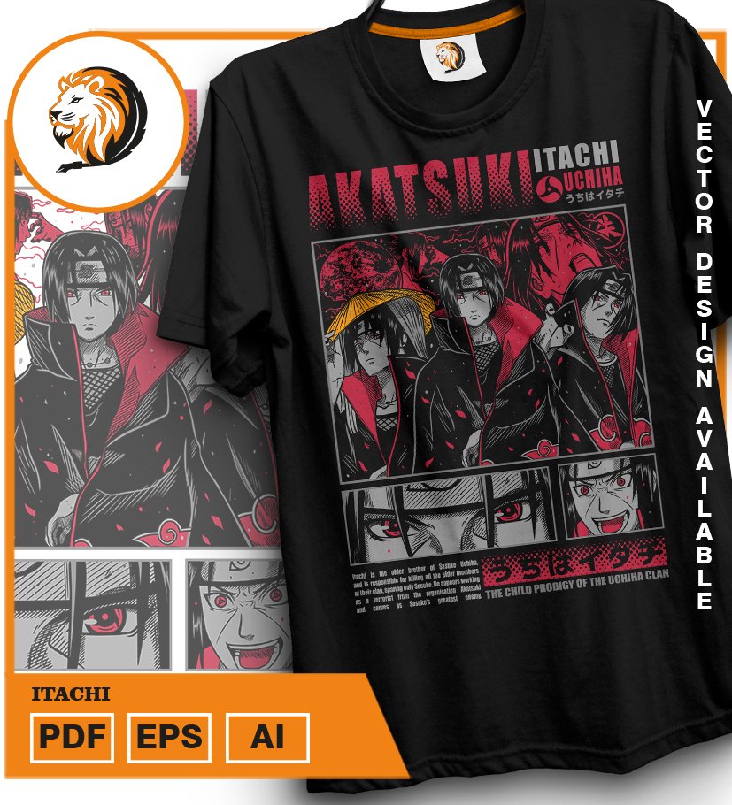 Plantilla diseño de camisetas vectoriales de anime Naruto itachi