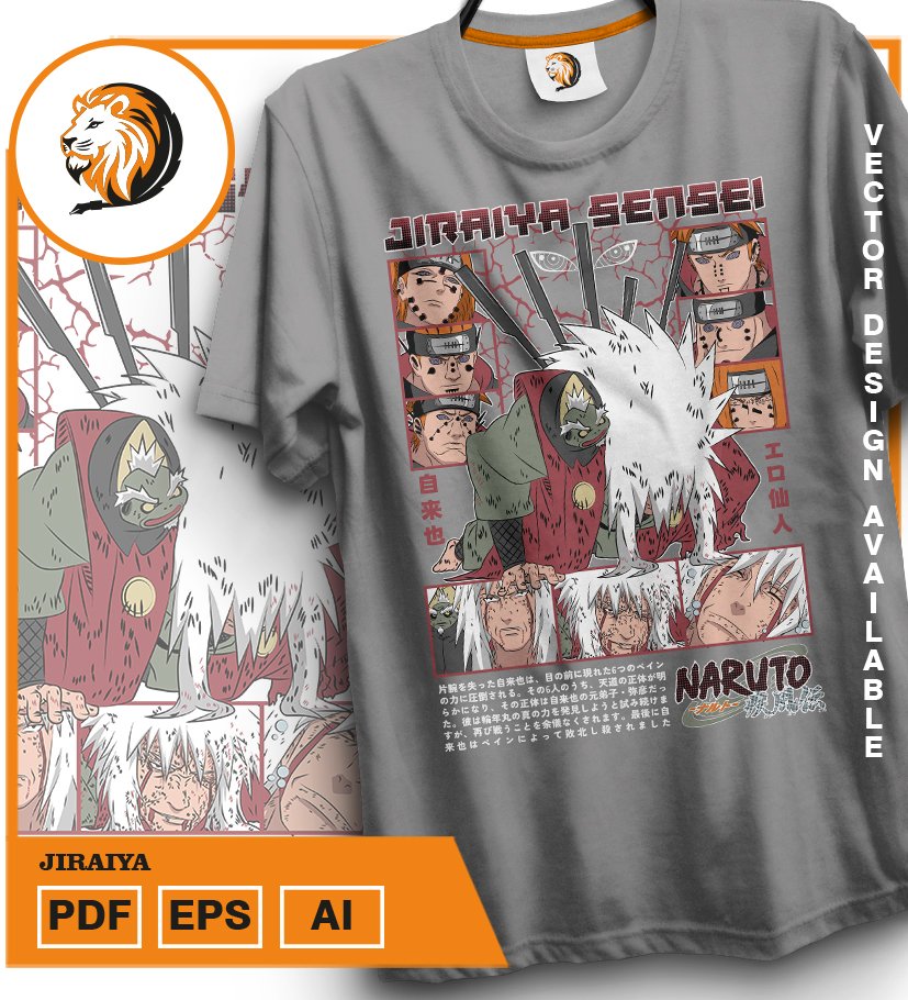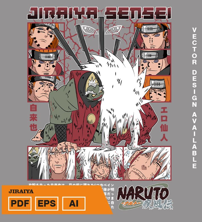 Plantilla diseño de camisetas vectoriales de anime Naruto Jiraiya
