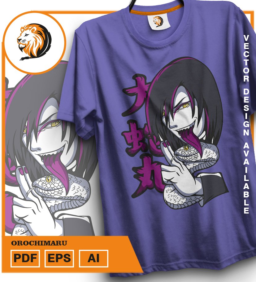 Plantilla diseño de camisetas vectoriales de anime Naruto Orochimaru