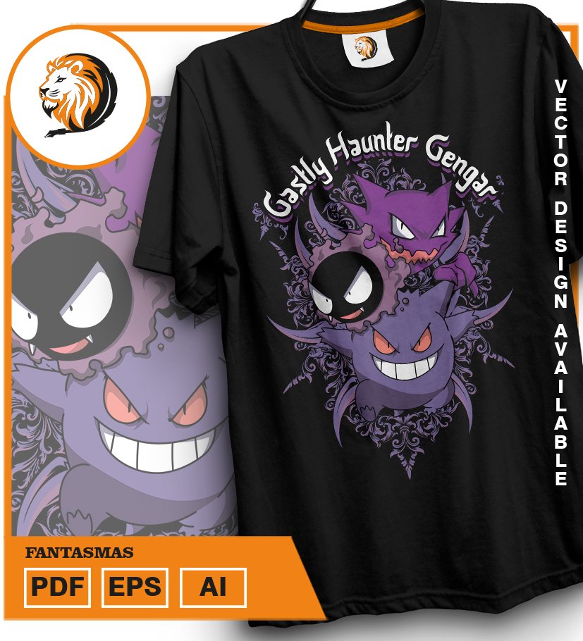 Plantilla diseño de camisetas vectoriales de anime poke gastly